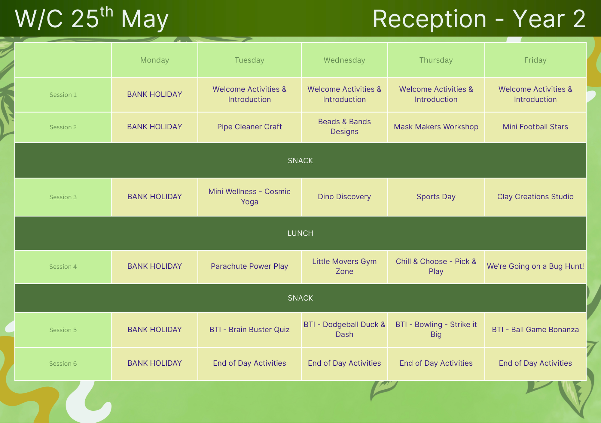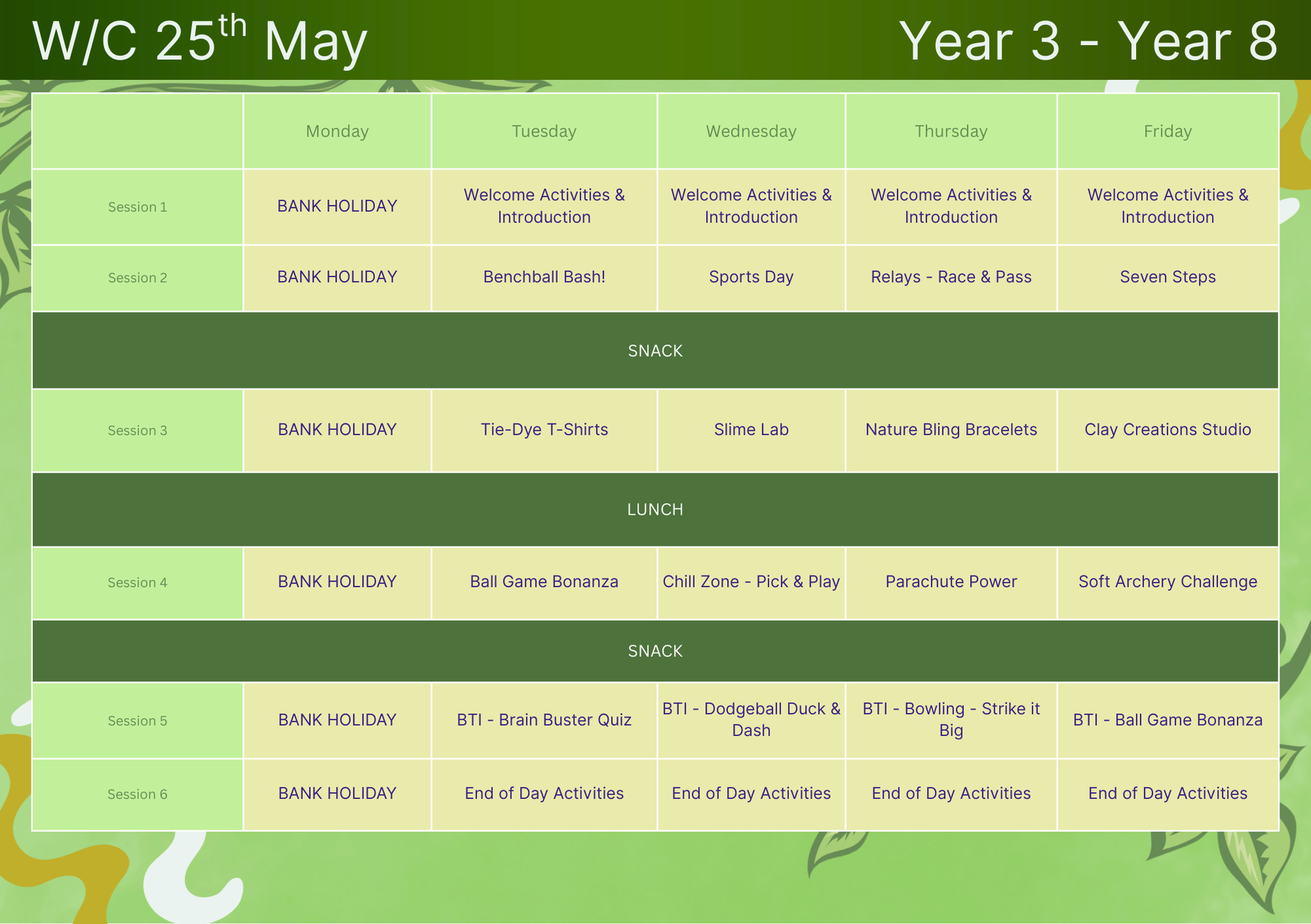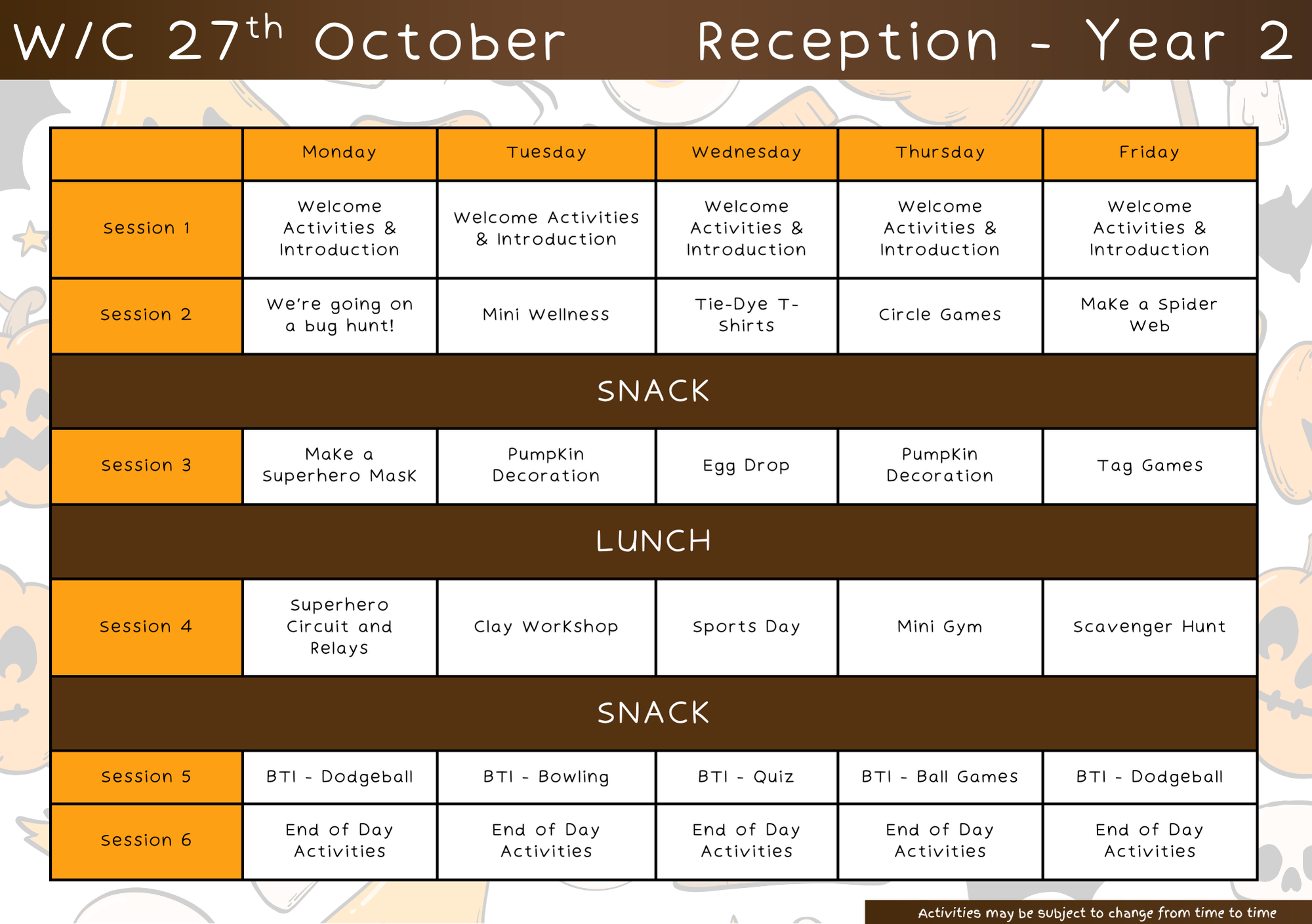 - Varied sessions (sport, team challenges, crafts, drama and more)